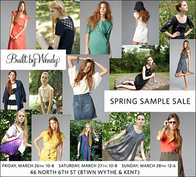WHY: Shop deep discounts at the Built by Wendy spring sample sale. Silk-twill drawstring tank-dresses are $80 (originally $274), canvas wedge sandals are $45 (originally $154), and five-pocket straight-leg jeans are $50 (originally $145).