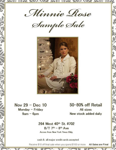 WHY: 50-80% off retail prices at the Minnie Rose Sample Sale. Prices range from $15-$150. All sizes available. New stock added daily.