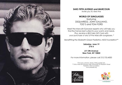 New York Trunk Show 6/19: Tom Ford, Tod's, John Galliano Eyewear benefitting Elizabeth Glaser Pediatric AIDS Foundation