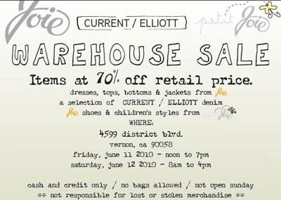WHAT: The Joie & Current/Elliot Warehouse Sale